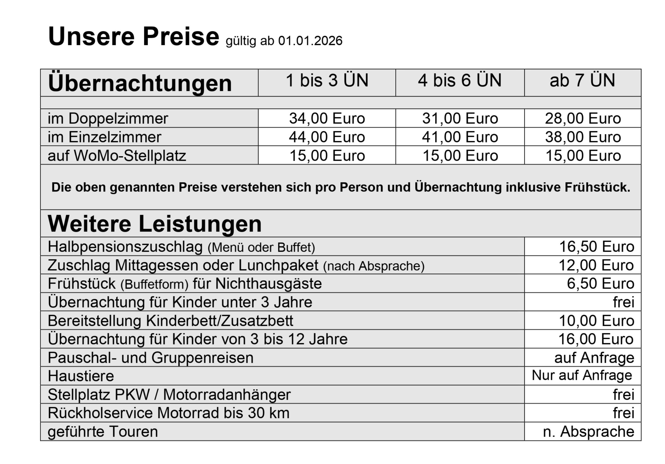 Unterkunftpreise